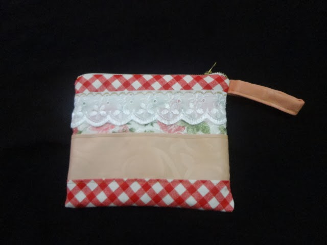 A weaved little tote bag which was intended to be a pouch and I changed my mind half way through.....and a cute little pouch with a bow. Well, the bow is where it is as an after thought to cover a little mistake I made while sewing.